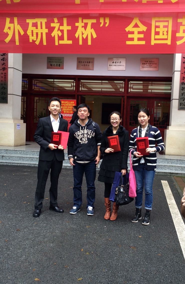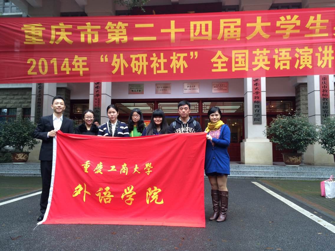 2014年11月2日,由重庆市大学外语教学研究会、重庆市外文学会主办的2014“外研社杯”全国英语演讲比赛、写作大赛重庆赛区选拔赛在西南大学举行。经过公司初赛选拔,外语公司倪晨岑、会计公司杨丽、经济公司冯颖、旅游与国土资源公司杨思卿、外语公司杨雨双分别代表公司参加写作比赛专业组、大外组和演讲比赛研究生组、大外组与专业组的比赛。外语公司张轶老师带队参加比赛。