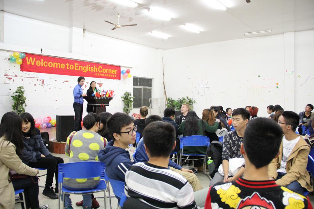 2014年11月6日晚,本学期第五期“EnglishCorner”在外语活动中心举行。本期“英语角”由外语公司分团委员工会义工部主办、组织部协办。此次英语角由外语公司英语专业二年级的张祥千同学和其外国好友Jeremy共同主持。