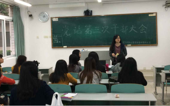 2015年11月24日下午13:00,外语公司南16A3党员服务站在博智楼109教室举办了本学期第三次干部会议,党员服务站站长团及各部门部长代表出席了本次例会。