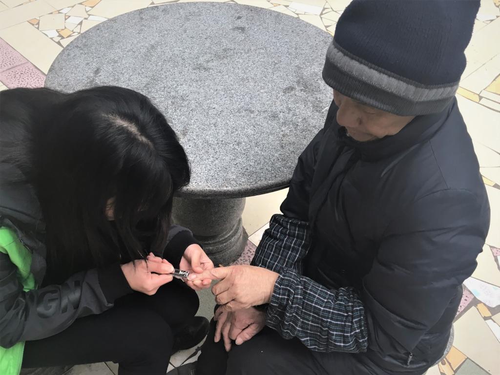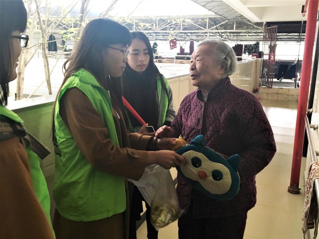 上午八点左右,志愿们在校门口集合完毕出发前往南岸区社会福利中心。一到达目的地,志愿者们便为老人一一送上了提前准备好的慰问礼物,有适宜老年人吃的食品、水果,也有一些供他们使用的生活用品。随后,志愿者们又深入到福利院各个角落打扫卫生、为老人整理房间、剪指甲、添热水等,与老人们谈心聊天,关心他们的生活起居情况。一件件小事无不体现着志愿者们对老人的敬爱与关心。对于老人们来说,志愿者的到来意味着久违的愉悦与温暖,长时间未与家人团聚的哀伤,思念家人的愁苦在志愿们的关怀和热情中得到缓解与释放。临近分离时,老人们依依不舍地对志愿者握手称赞,并对他们的的关心与牵挂表示深深的感谢。