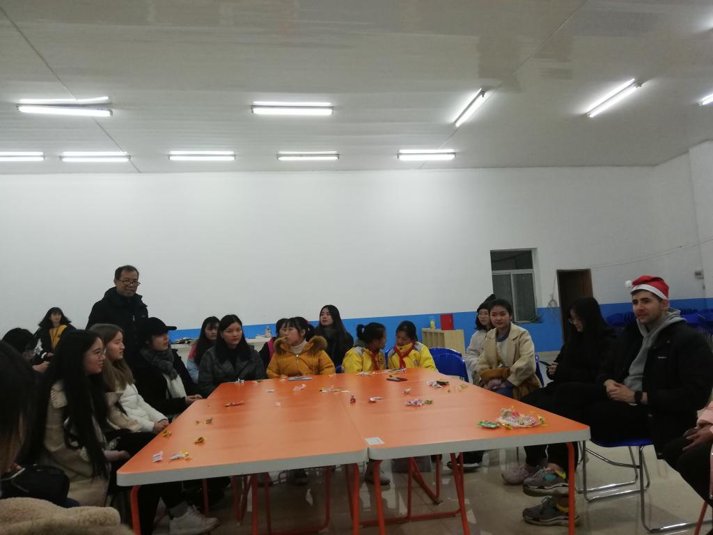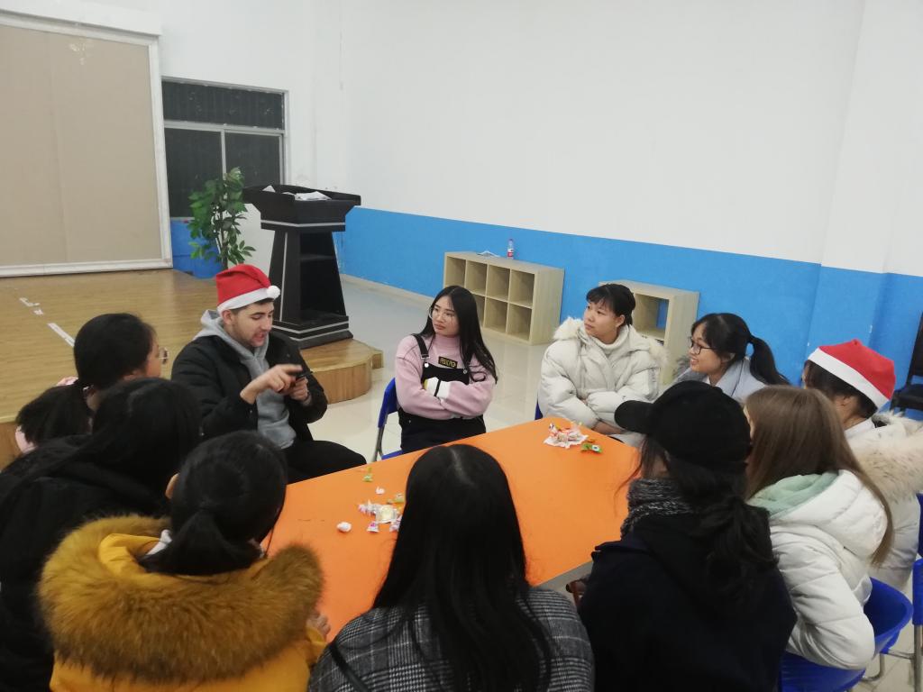 主持人王誉浛同学以流利的英语为英语角开场。在Free Talk的环节中,Cam、Sam两位老师和同学热烈讨论,同学们积极的向外教询问了关于圣诞节的相关事宜,并了解了圣诞节的来源、意义,外教热心的做了解释,同学们自己也分享了自己对于圣诞节的看法和自己怎么过圣诞节。大家还一起做了猜词游戏,更有糖果作为奖励。更在欢乐的气氛中,同学们在交流中增长了见识,又学到了新的知识。