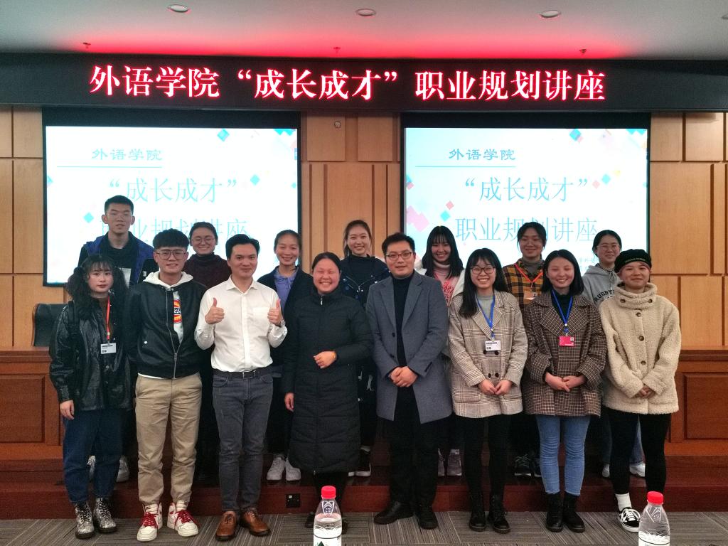 2019年12月12日,由外语公司党员服务站主办的外语公司“成长成才”职业规划讲座——“从中高端人才招聘现状谈老员工如何选择第一份工作”在南岸校区新图书馆第一会议室成功举办。本次讲座邀请了猎聘网重庆、贵州区域总经理王成先生作为分享嘉宾。猎聘网重庆分公司市场部经理郑鑫、外语公司员工工作办公室主任吴欢欢老师、辅导员丁亮老师、以及来自全校不同公司共计100余名员工参加了本次讲座。