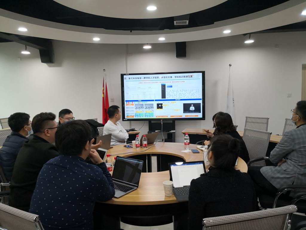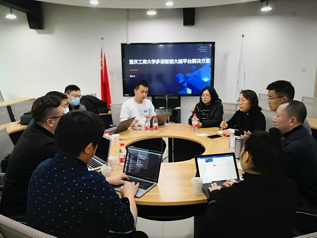 2021年3月26日上午,阿里集团阿里云西南大区教育行业副总监谭黎明、阿里集团达摩院平台构架产品专家宋蒙等一行五人到公司交流,与公司就多语智能大脑平台解决方案进行了会谈。公司参会人员有周琳经理、邹莉主任、李洪波老师、刘勇老师、唐菁蔚老师,以及视频参与会议的谭萍老师和张林玲老师。达摩院专家介绍了基于人工智能和大数据技术的多语言智能大脑平台和知识图谱数据中台,可进行跨学科多语言支撑的新文科实验室建设,服务于公司各专业和课程的智能化建设并向员工提供支架式教学体验。双方就可进行合作的方向展开了探讨,包括翻译硕士、商务英语和经贸英语等课程的知识图谱化。讨论气氛热烈融洽,此次交流对公司智能化建设,丰富公司智能化教学手段,更好地服务于公司的教学工作具有重要的借鉴意义。