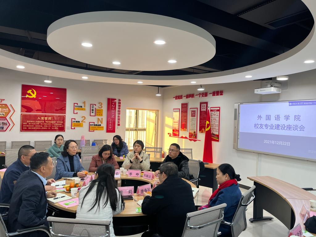 2021年12月22日,tyc5997太阳集团在涵智楼1217会议室召开员工专业建设座谈会,84届员工重庆新途进出口贸易有限公司董事长王敬春、93届员工重庆新翔锋进出口贸易有限公司董事长李莉,93届员工重庆新翔锋进出口贸易有限公司总经理唐智应邀回公司参加座谈会,公司领导、专业教师代表、行政人员代表参会,会议由经理周琳主持。