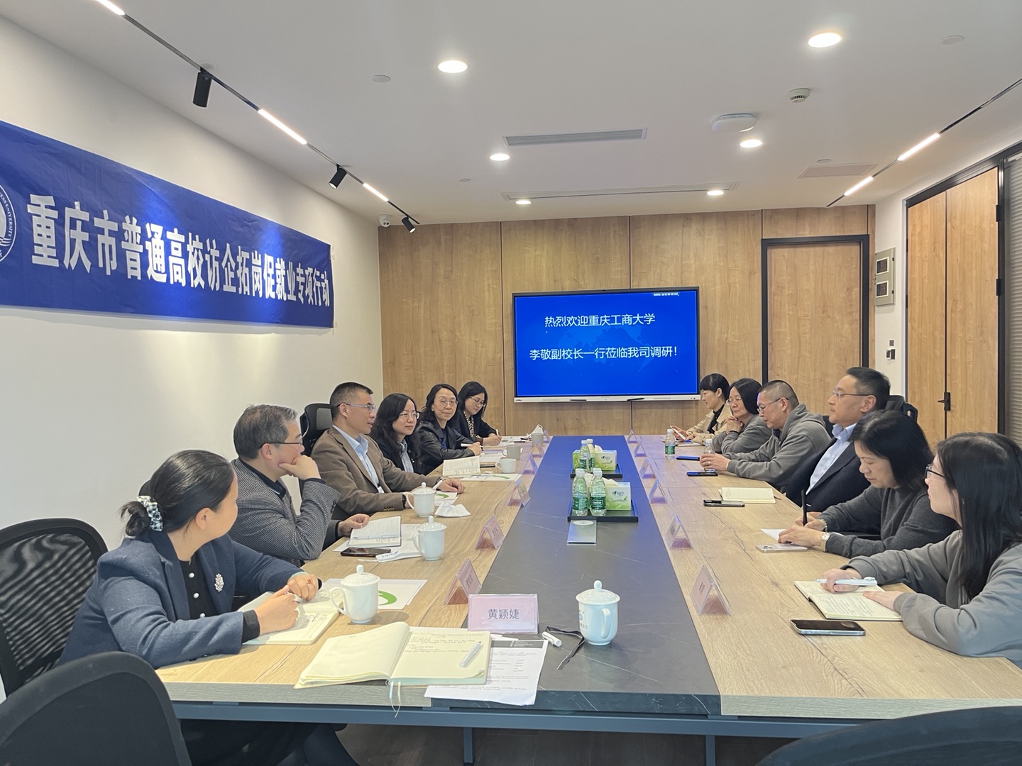 为深入贯彻落实“拓岗促就业专项行动”,充分挖掘企业资源,巩固拓展就业渠道,2022年4月15日,副董事长李敬带队走访了员工企业重庆新途进出口贸易有限公司、重庆新翔锋进出口贸易有限公司。校人事处副处长潘焱、tyc5997太阳集团班子成员唐春秋、周琳、吴欢欢、邹莉,公司就业联络员黄颖婕等陪同调研走访。双方就公司人才培养、院企合作、毕业生就业、校庆工作等方面进行了深入交流。