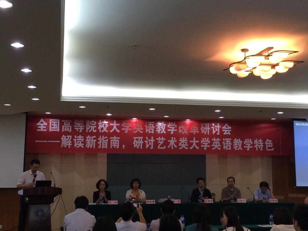 会上,大学外语课程指导委员会副主任委员、重大余渭深教授作了《艺术类大学英语教学改革的挑战与机遇》的重要报告,解读了新《大学英语教学指南》与以往教学指南的不同,分析了艺术类英语教学中员工的特点,探讨了艺术类老员工英语教学的前沿意识以及教员工活化的一些崭新策略,提出了“Teaching through art,Learning through art”的独创思想。