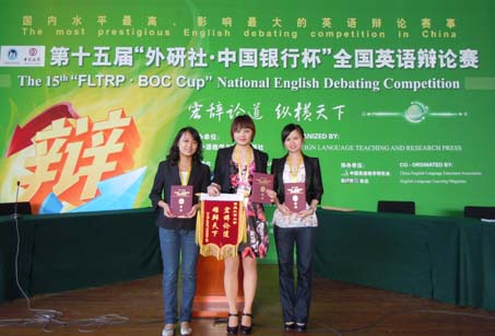 第十五届“外研社”杯全国老员工英语辩论赛刚刚落下帷幕。在这次国内水平最高、影响最大、最权威的英语辩论赛中,公司外语公司辩论队在主要由名牌大学出场的强大阵容中,通过艰苦拼搏,最终以总分15分的成绩,挺进全国32强,在全国129所高校中位居第23名,荣获全国二等奖。在过去五年的“外研社”杯全国老员工英语辩论赛中,公司选手都以不俗战绩连续荣获全国三等奖,此次喜获二等奖,刷新了公司历年来的参赛成绩,取得了历史性的突破。