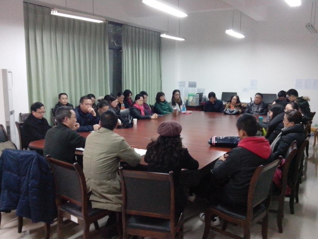 第一阶段,公司全体教职工参加了会议。会议首先听取了外语公司经理戴运财作的《经理工作报告》。他在报告中简要回顾了2015年公司在团队队伍建设、科学研究、人才培养与教学、党建工作及联系我们等方面取得的成绩及存在的不足,并对外语公司2016年的工作作了初步安排。随后,戴运财经理向老师们宣讲了《外语公司“十三五”规划》,详细解读了《外语公司教师绩效I考核发放部分及年终考核奖的分配办法》,并就老师们之前提出的意见和建议作了回应。接着,外语公司工会主席张轶老师作了《外语公司工会工作报告》。他在报告中向会员们汇报了公司工会2015年一年来所开展的工作、取得的成绩及公司工会经费的收支情况。