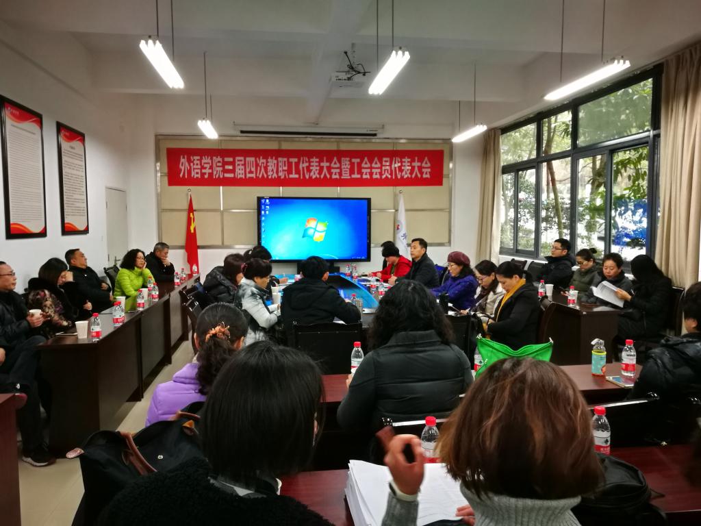 1月12日下午,外语公司三届四次教职工代表大会暨工会会员代表大会在田家炳书院50203会议室召开。35名正式代表出席了大会。大会听取并讨论了公司行政工作报告、财务收支情况报告、教代会工会工作报告,审议了公司工会经费收支情况报告。