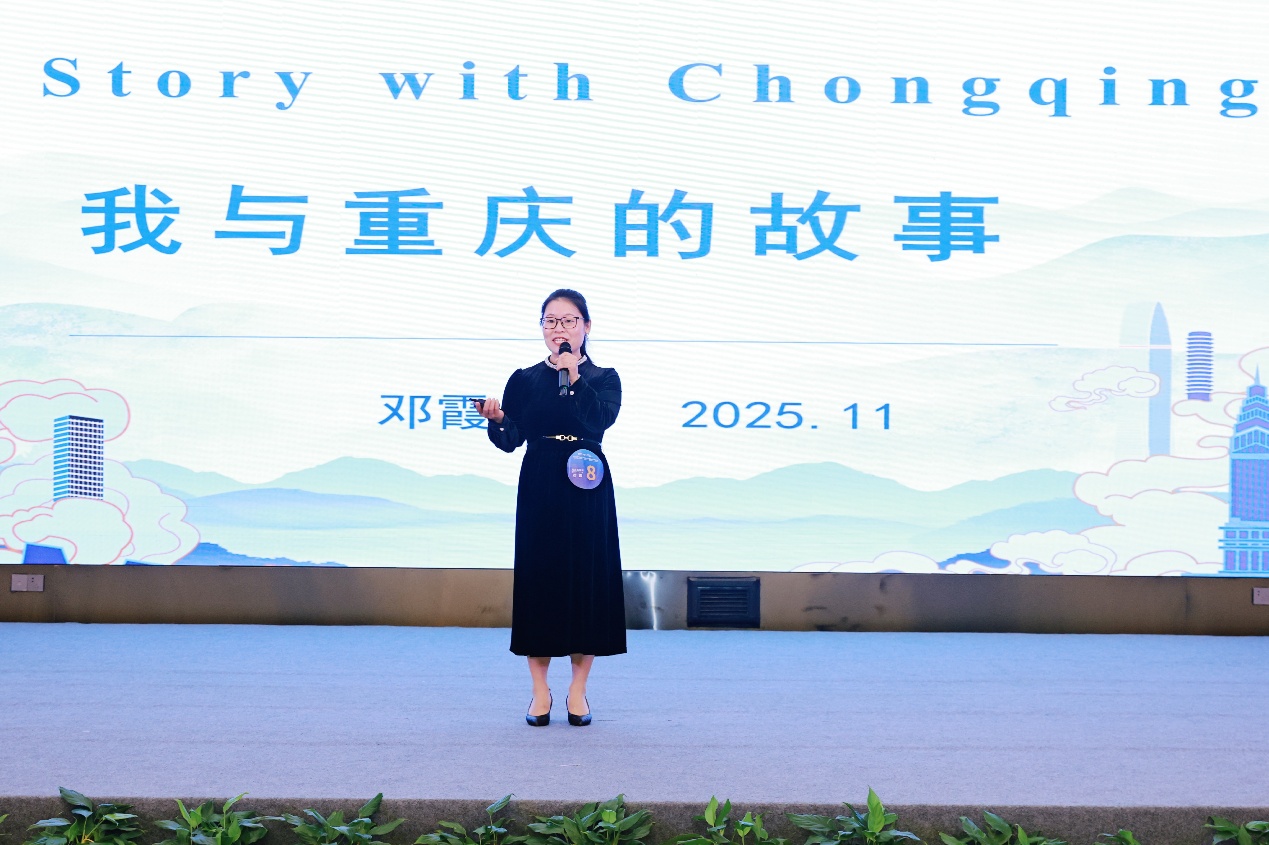 本次大赛由重庆市人民政府外事办公室等联合主办,是重庆外语界高规格赛事,采用“主题演讲 + 即兴问答”赛制,全面考察选手多方面能力。高校组仅10人进决赛。决赛中,邓霞紧扣“我的重庆・我的城”主题,以个人成长展现城与人共生力量,演讲流畅自然、富有感染力。