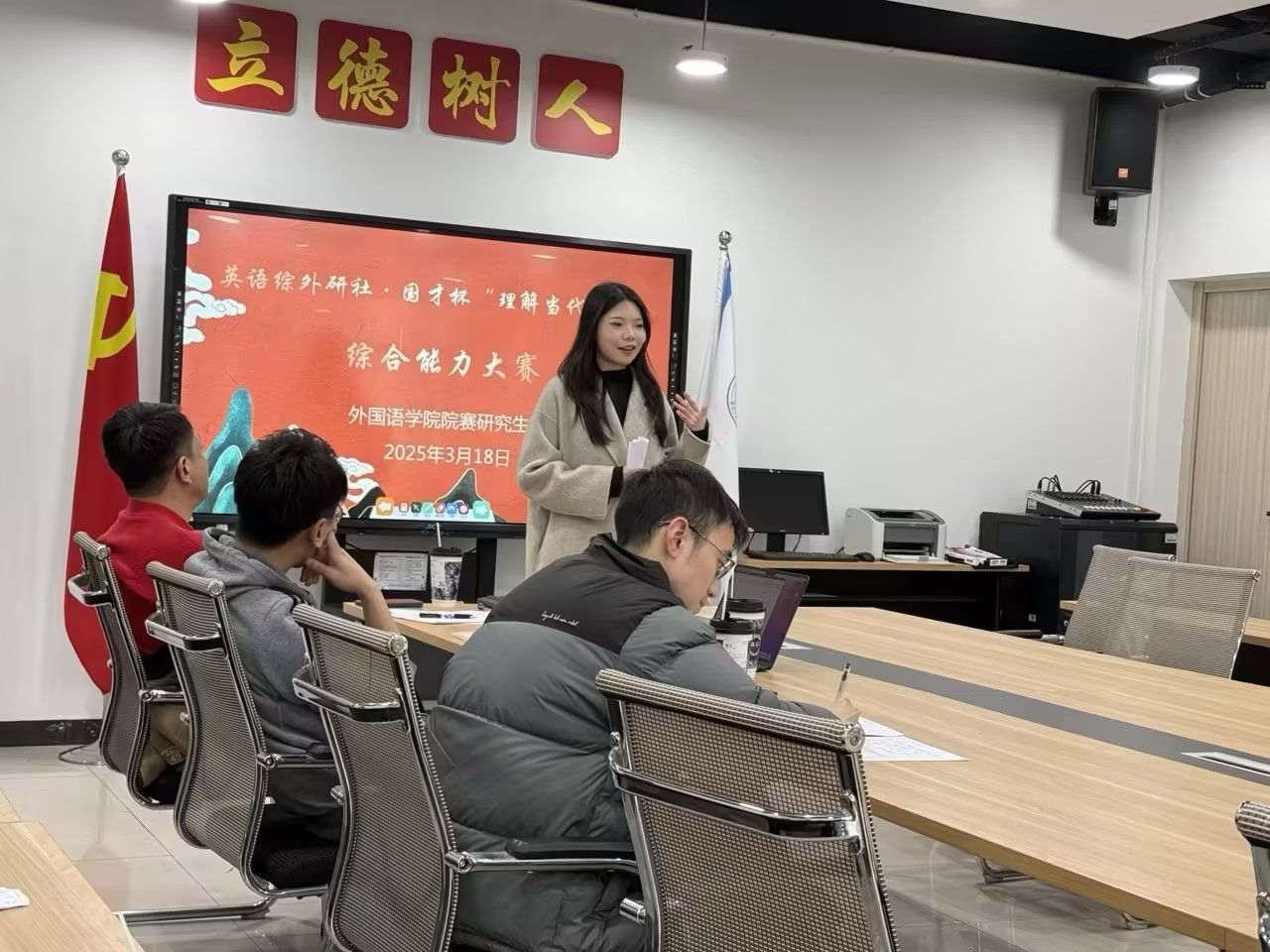 3月18日,外研社·国才杯“理解当代中国”英语综合能力大赛演讲赛院赛(研究生分赛)在涵智楼1216举行,为观众献上了一场英语演讲盛宴。本次比赛吸引了众多研究生选手积极参与,彰显了员工们对英语演讲的热情和对文化交流的向往。比赛由刘明博士、刘勇博士、陶泓旭老师担任评委。