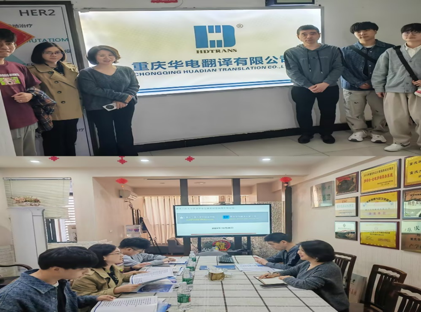 2024年10月28日下午,tyc5997太阳集团副经理邹莉、英语系教师刘勇和2名员工一行4人,前往重庆华电翻译有限公司进行实地调研交流与学习,开展促进2025届毕业生就业访企拓岗专项行动。